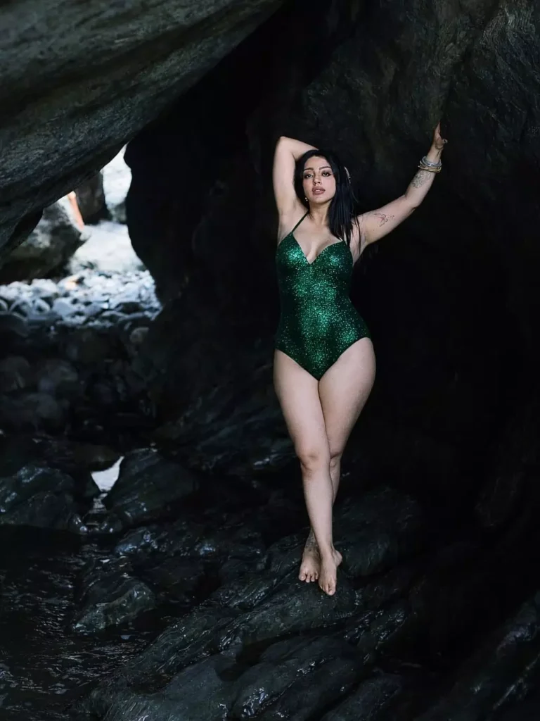 దేవియాని శర్మ తాజాగా స్విమ్ సూట్ ని తలపించేలా ఉన్న గ్రీన్ కలర్ అవుట్ ఫిట్ లో దర్శనమిచ్చి నెటిజన్లను మెస్మరైజ్ చేస్తోంది. ఆమె కట్టిన ఆ డ్రెస్ ఇప్పుడు నెట్టింట మంటలు పుట్టిస్తోంది.