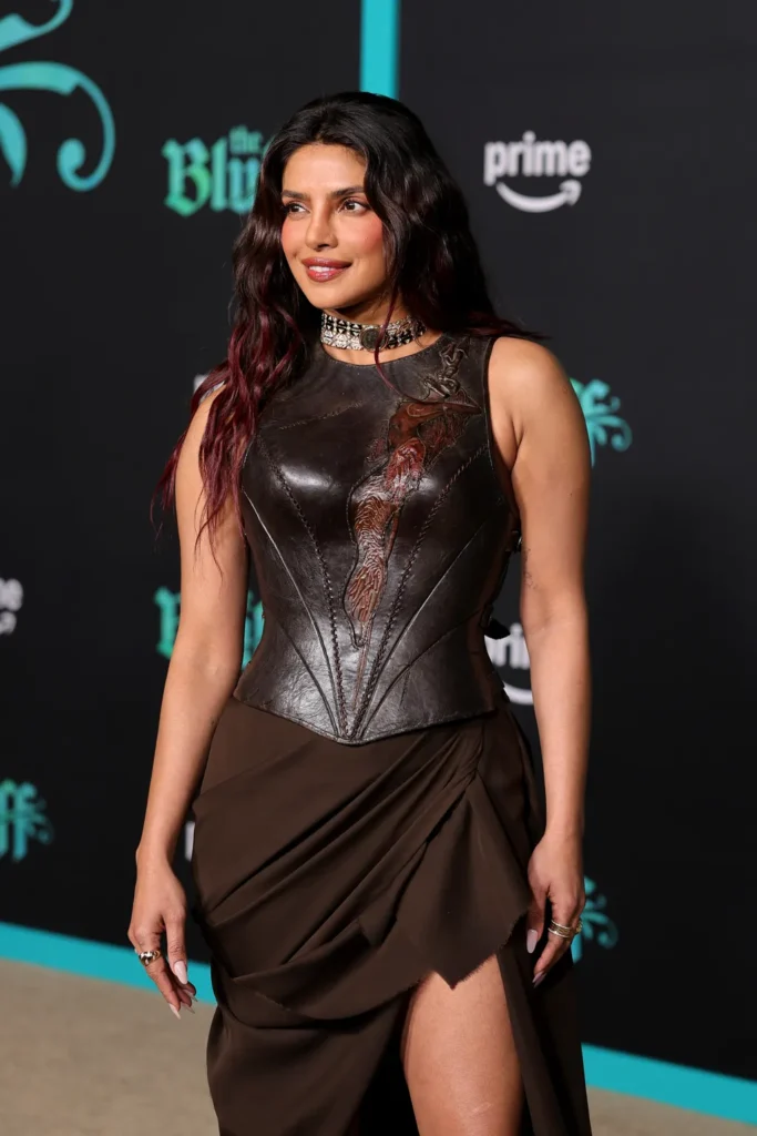 రెండో లుక్లో ప్రియాంక అసలు సిసలు ‘ఫియర్స్’ (Fierce) అవతారం ఎత్తింది. డార్క్ బ్రౌన్ లెదర్ కోర్సెట్ టాప్లో ఆమెను చూస్తుంటే వొళ్లు జలదరించాల్సిందే. ఆ లెదర్ ఫినిషింగ్ ఆమె గ్లామర్కు ఒక రకమైన ‘వైల్డ్’ టచ్ ఇచ్చింది.