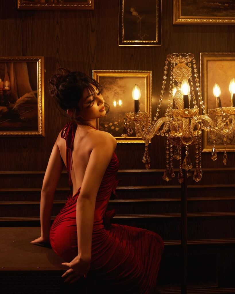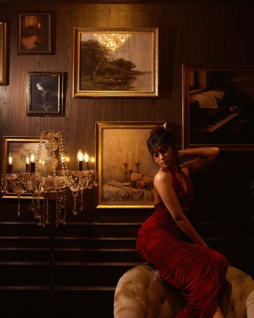 మెరూన్ రెడ్ గౌనులో మంటలు పుట్టిస్తోంది!